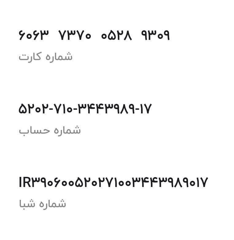 به شماره حساب و شماره کارت فوق، اقدام نمایید.